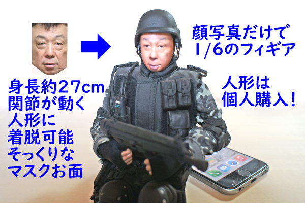 顔写真1枚でドール用お面制作・貴方はサバゲー1/6フィギュアになる。超ユニーク作品