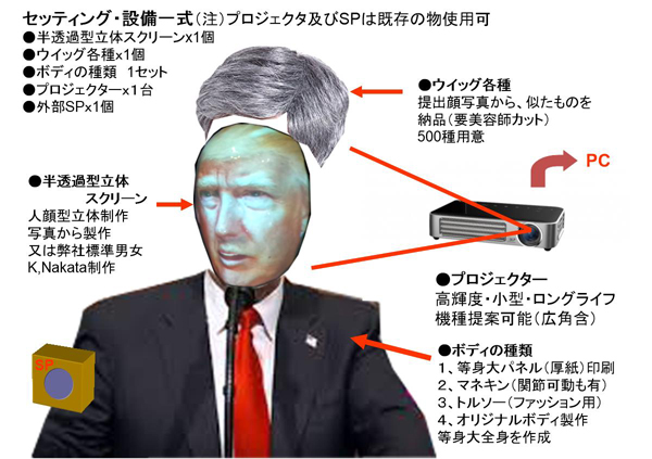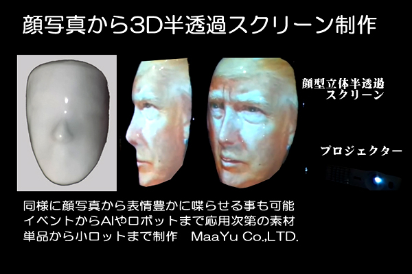 弊社の写真から立体顔制作で培われた顔型を応用した半透過スクリーンは、