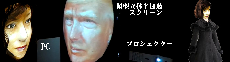 顔写真から立体のリアルマスクお面を作る業務応用で半透過型の立体スクリーンを制作。