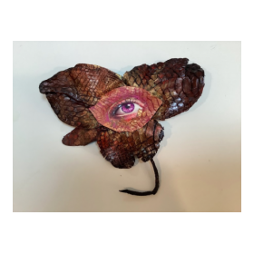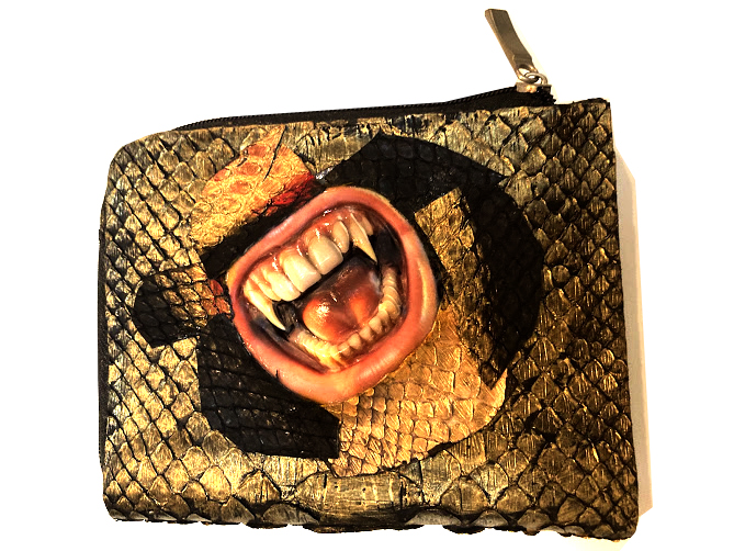 リアルなデザイン立体を創作し、これと蛇革や革と融合した作品を作り出す事が