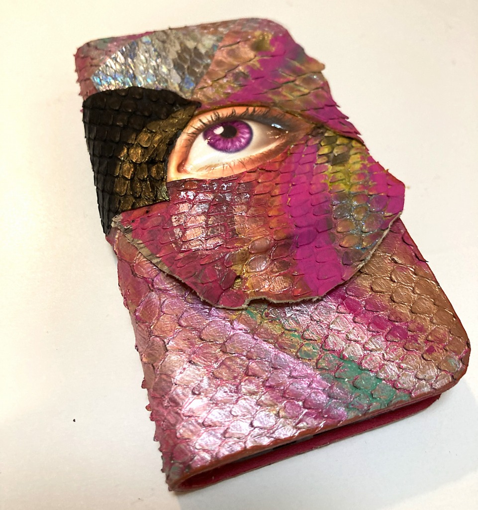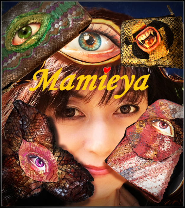 このWEBに掲載の様に、Mamieyaでは、蛇革の彩色デザインの作品を