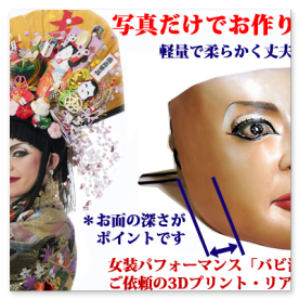 リアルマスクお面は、人の顔からアニメやモンスターまで、1枚の写真やデザイン画像でリアルなお面に加工致します