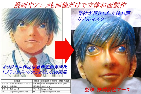 漫画アニメ立体お面サンプル品として製作致しました。