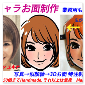 これを元に、忠実な立体お面と致します。人物に限らず妖怪や怪獣、動物なども