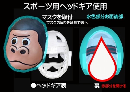 特に頭が普通の感じの場合は、下記の様にスポーツ用のヘッドギアの正面にお面をつけて、