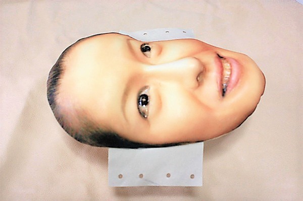 実際にお面としてつける場合は、瞳の部分に5mm程度の穴と口又は鼻の部分に呼吸用の