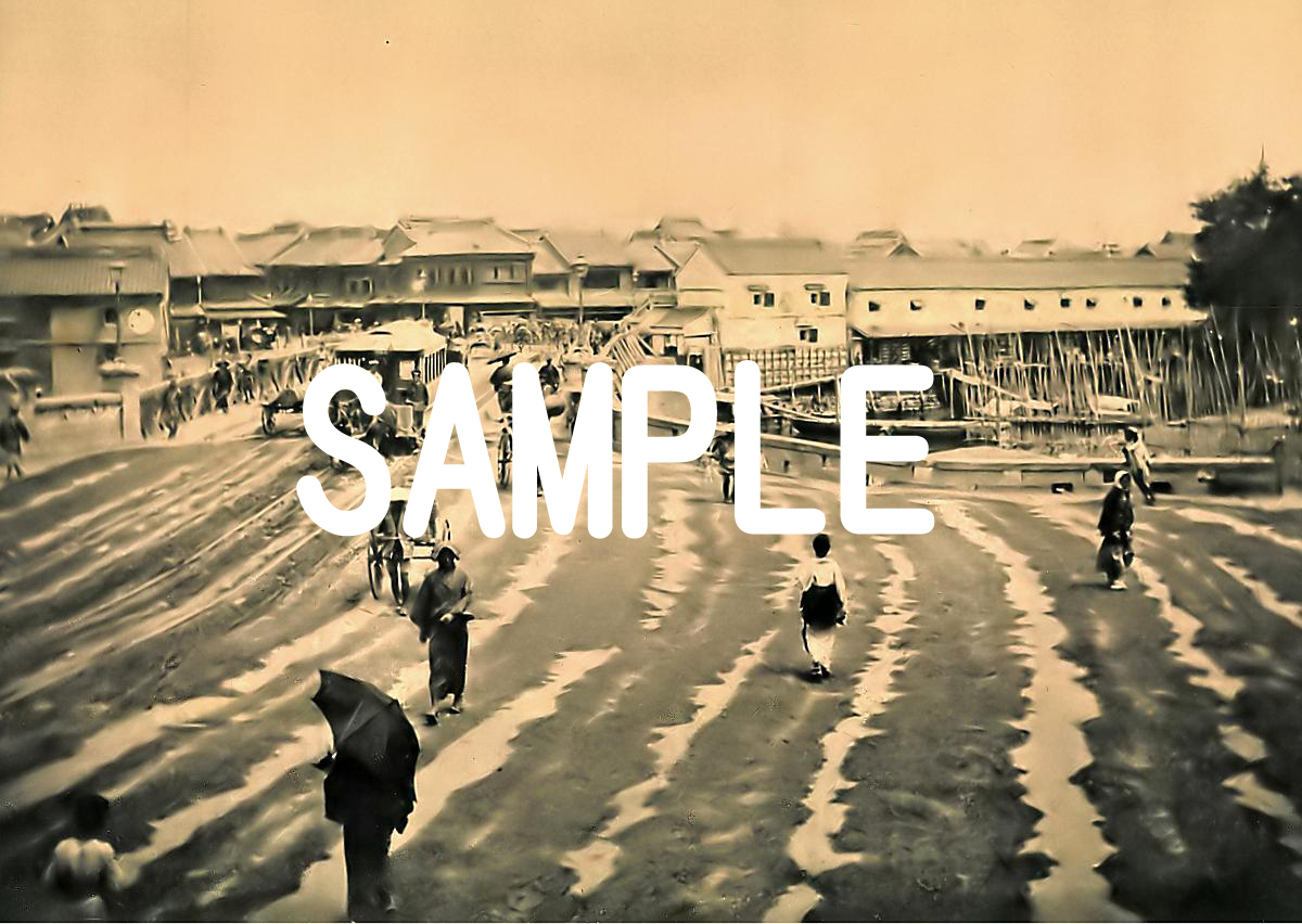 明治15年新橋日本橋間に日本馬車鉄道が走りました。停車場は数か所のみで、手をあげれば止まってくれたり、また自由なところで、降りたり出来る様でした。背後の景色は、当時の銀座方向ですが、殆ど江戸の頃のままの雰囲気です。でも日本橋付近も、道幅は大きいですね。歩く人も人力車も、風情があります。
